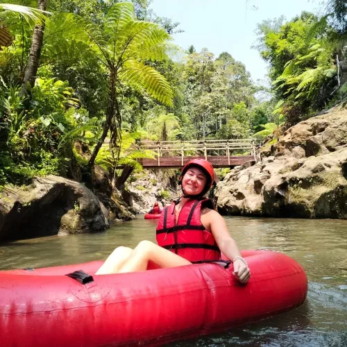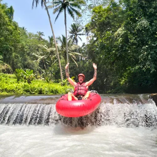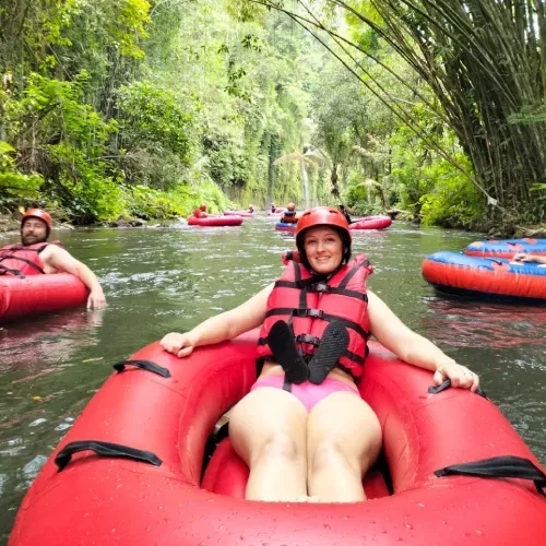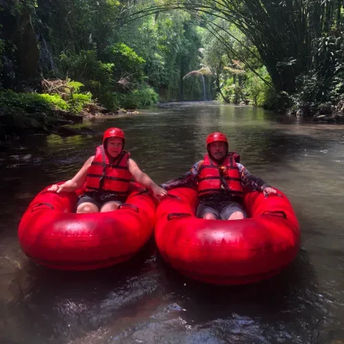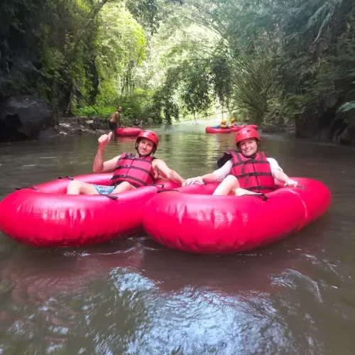 River Tubing experience is a perfect blend of excitement and tranquility, offering a unique way to explore the hidden gems of Bali. Drift along gentle currents and navigate through exhilarating rapids, all while soaking in the mesmerizing scenery that Pakerisan River Tubing has to offer. Bali Tubing Adventures trip is located in the heart of the art colony of Tampaksiring Ubud Bali The Restaurant located on a beautifully situated terrace overlooking and endless stretch of green lush rice paddies. Enjoy breathtaking views of the surrounding rainforest, rice paddies, and traditional Balinese villages as they drift along the river, making it a relaxing yet adventurous experience
