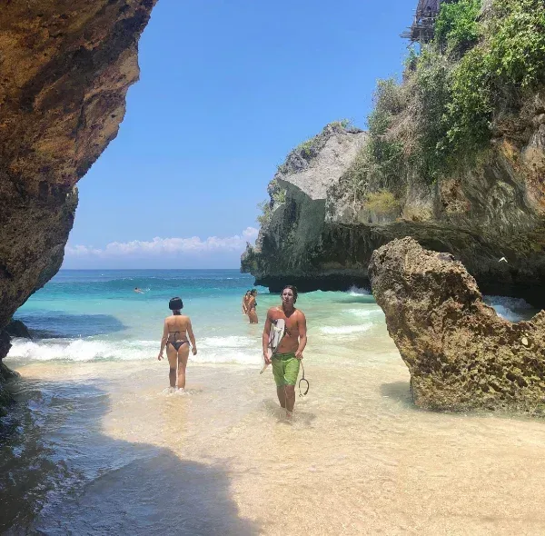 Continue to Pantai Padang-Padang, a hidden gem surrounded by cliffs. This small yet stunning beach is famous for its crystal-clear waters and excellent surf conditions. - 14:00 - 15:00 | Pura Uluwatu